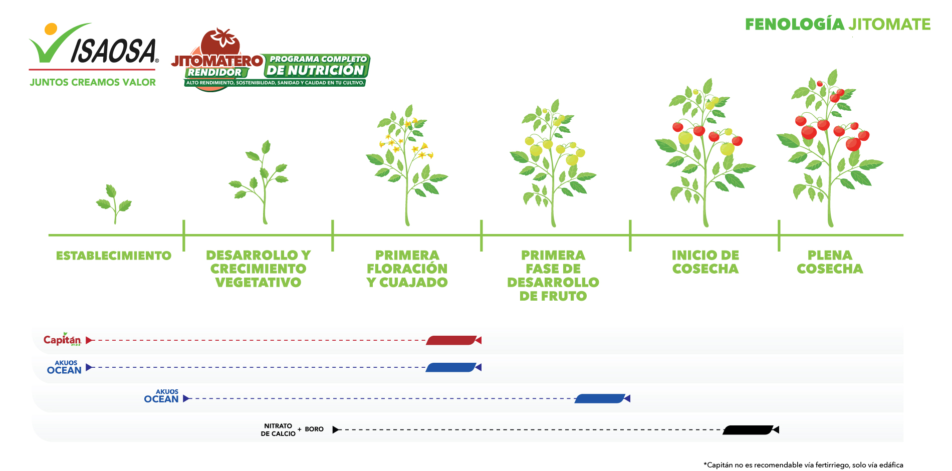 Fructificación: Potasio (K), Calcio (Ca), Magnesio (Mg); Aumenta firmeza, sabor, calibre y vida de anaquel.